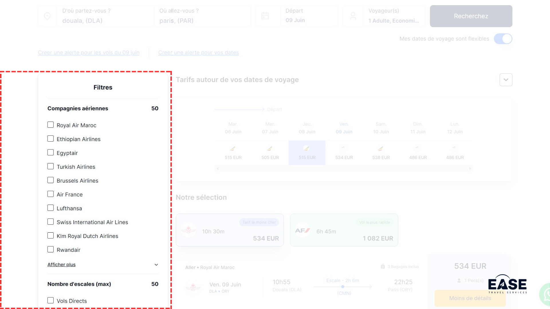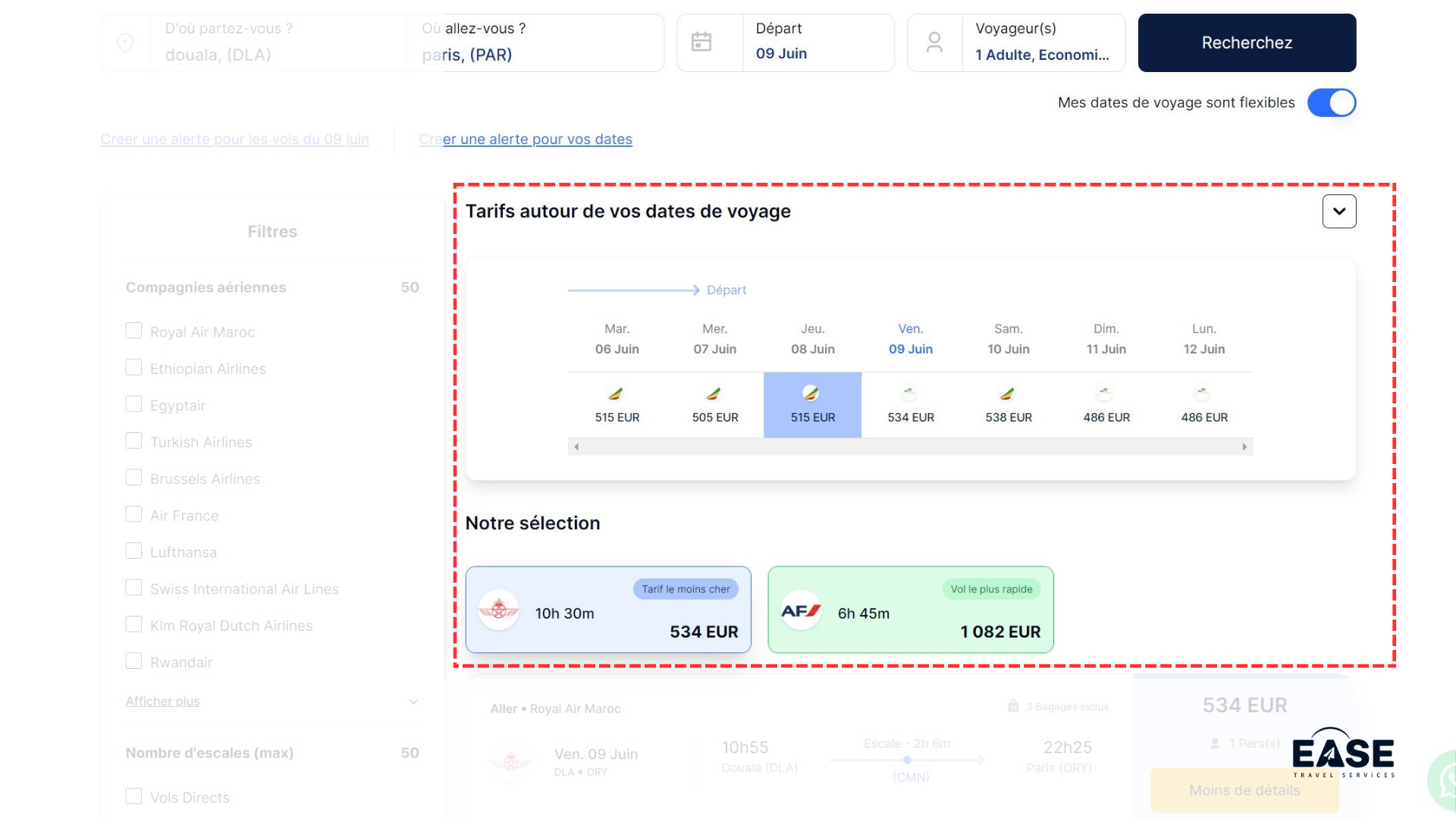Comment utiliser Ease Flight pour trouver le meilleur prix pour un vol concrétement ?