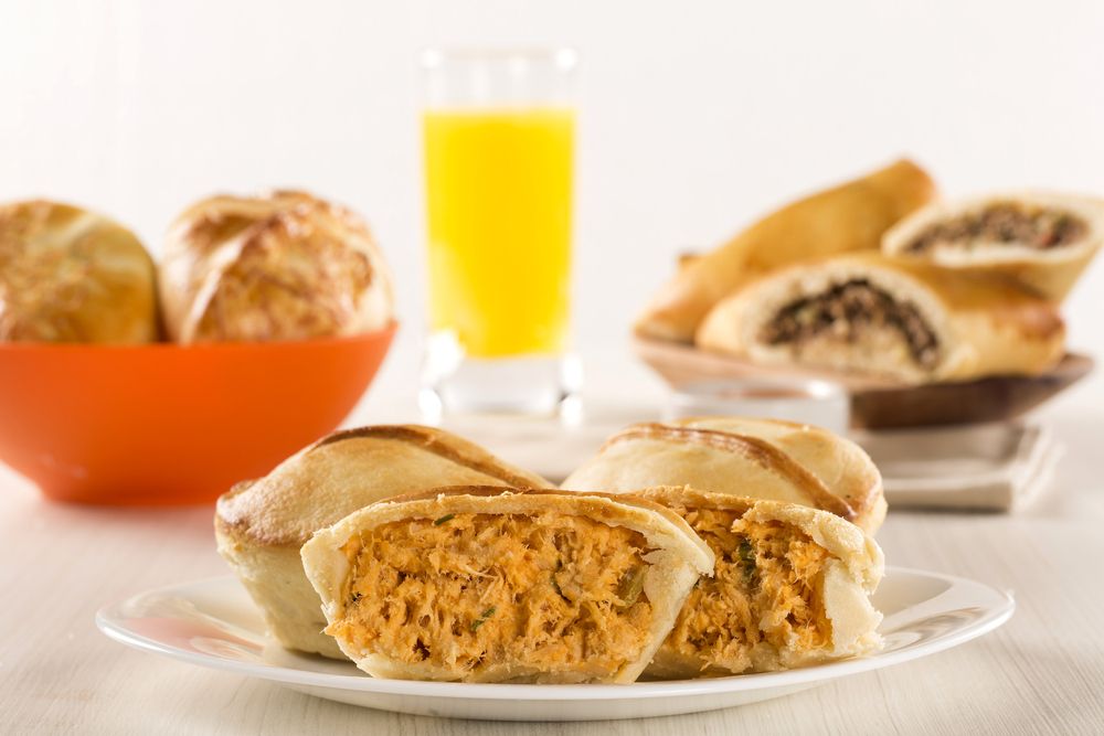 · Empada – Ce goûter peut être trouvé comme nourriture de rue au Brésil. Ils sont généralement faits de poulet, de fromage à la crème, de pois et de maïs. D’autres viandes peuvent être utilisées à la place du poulet.