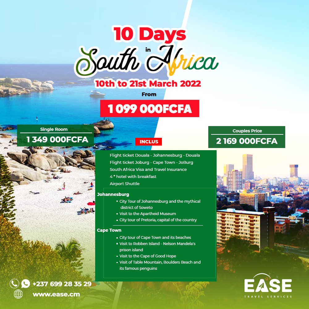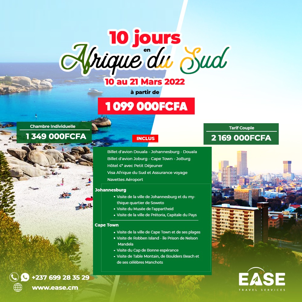 À partir de 2022, nous organisons des séjours touristiques en Afrique du Sud. Le prochain séjour en Afrique du Sud est du 10 au 21 Mars 2021 pour plus d'informations c'est par ici.