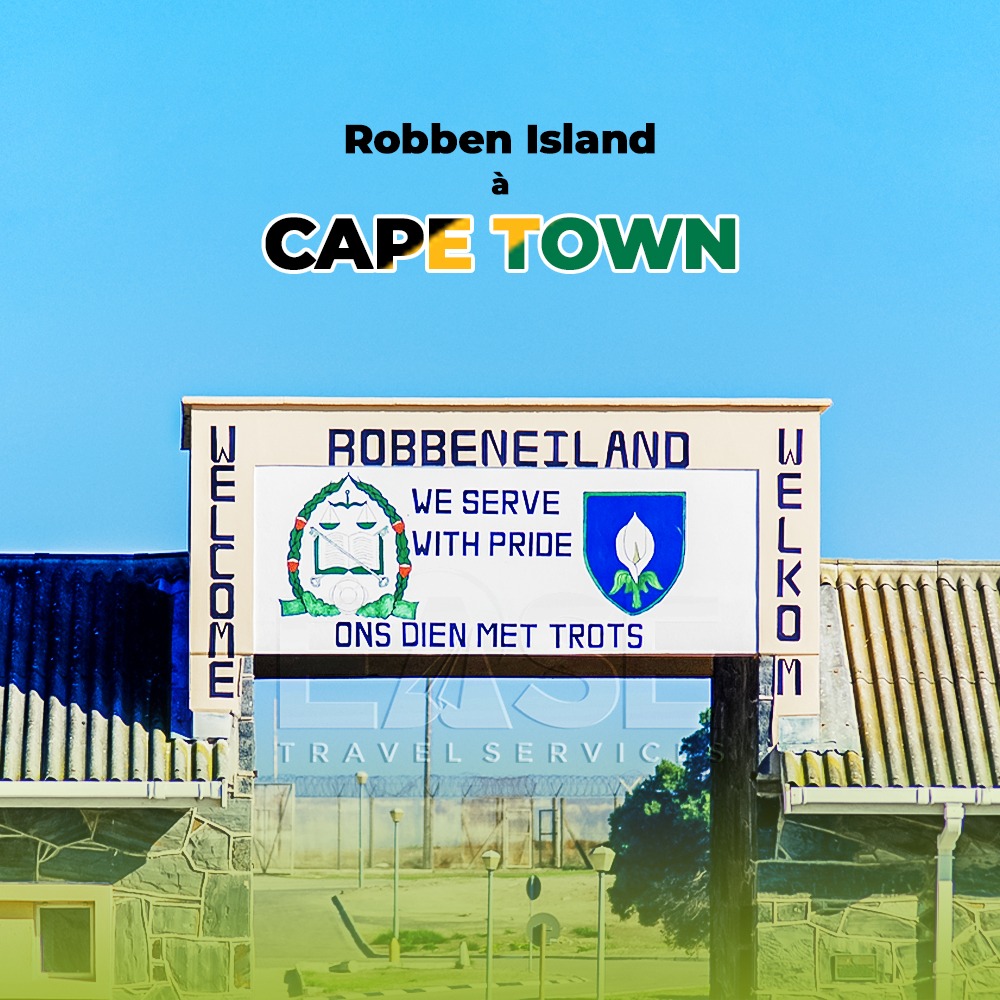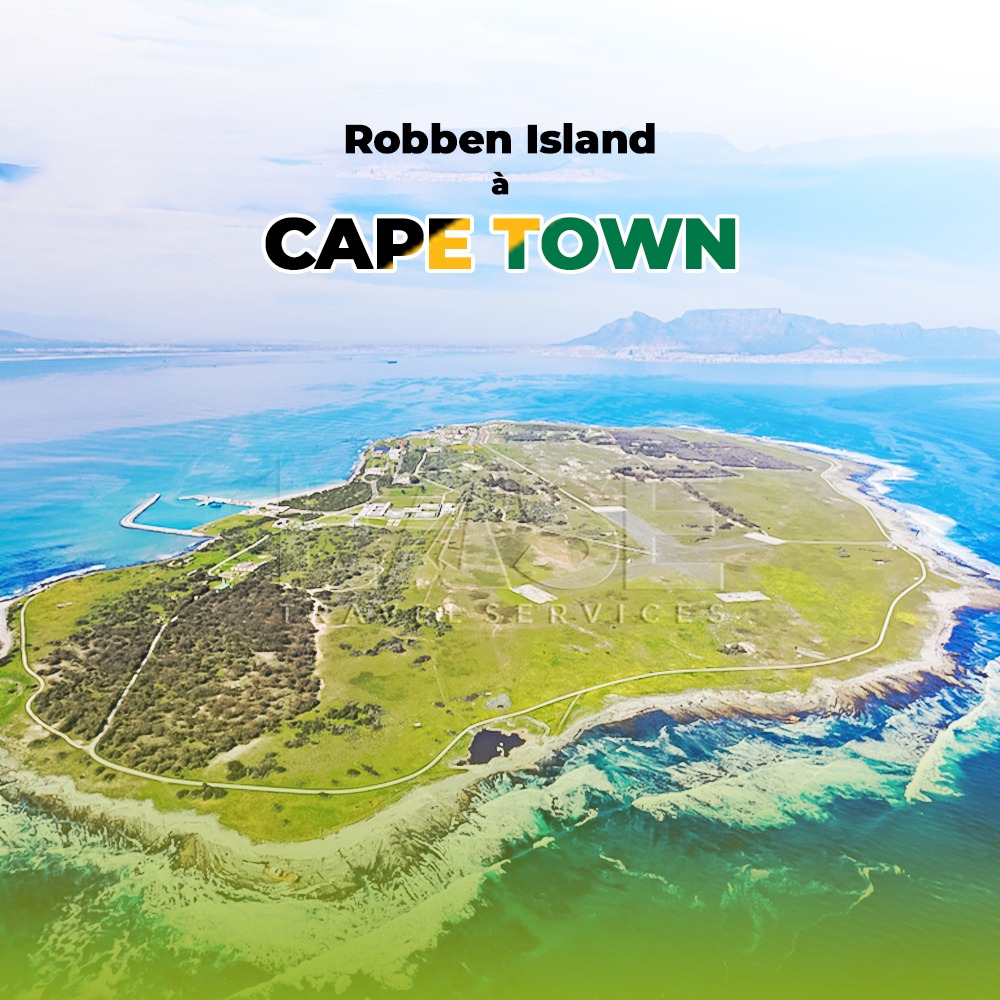 Robben Island, île située à 10 km au nord de Cape Town et a une superficie approximative de 13 km carrés. Son nom vient du mot néerlandais signifiant "phoques", autrefois abondants dans les eaux environnantes.
