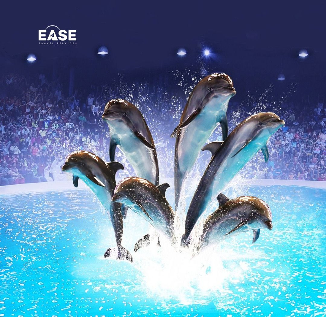 Plus de 40 000 visiteurs du delphinarium de Dubaï se rapprochent de gracieux grands dauphins et de phoques espiègles lors du spectacle mensuel rempli d'action des dauphins et des phoques. Ces extravagances interactives mettent en valeur les incroyables capacités des animaux. Les visiteurs s'émerveillent devant les dauphins et les phoques qui dansent, chantent, jonglent, jouent au ballon, rampent dans des cerceaux et peignent.